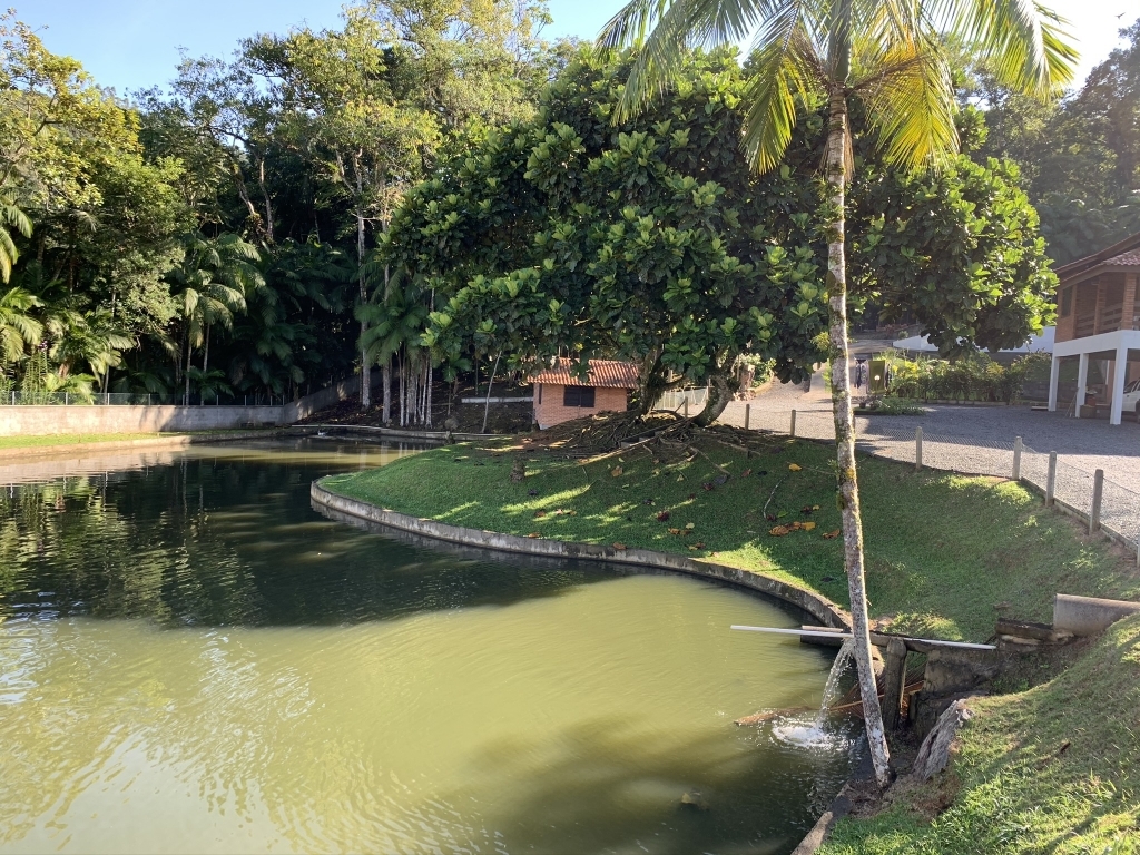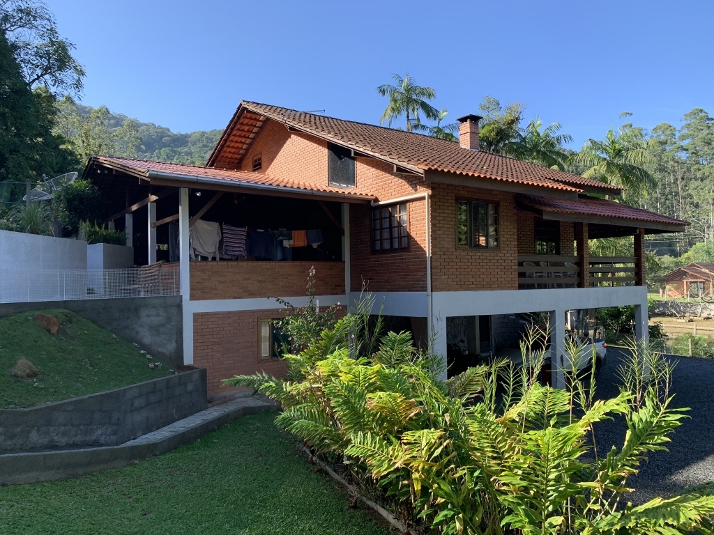 Lindo Sítio em Testo Rega - Pomerode - SC, contendo um Terreno com a área de 12 mil m², ampla área para plantio, acesso com veículo por todo o imóvel, 02 lagoas, 02 ranchos, estando um deles preparado para limpar peixes, área construída da casa principal de 310,00 m², edificada em 3 pavimentos, sendo o primeiro com despensa e 03 vagas de garagem, no segundo pavimento, ampla área de festas, 01 suíte, 01 lavabo, sala de estar, jantar e cozinha em um ambiente conjugado e varanda, terceiro pavimento, 01 banheiro, 02 quartos com sacada. Construção de mais uma casa inacabada. Área de mata preservada, riacho, nascente, livre de enchentes e desmoronamentos.