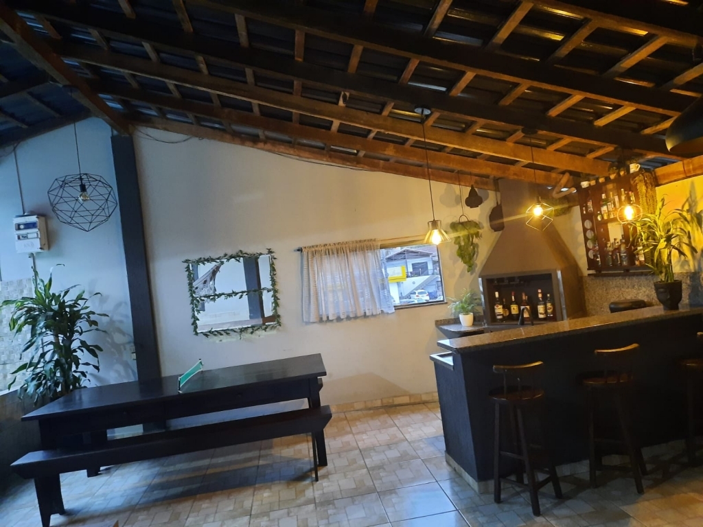 Com uma área construída de aprox. 180 m2 Possui: 3 dormitórios 2 banheiros Sala Cozinha com móveis sob medida Dispensa interna Área de festas com piscina Garagem para 2 carros Casa murada Telhado novo com pintura esmaltada dupla face, madeira de cambará.