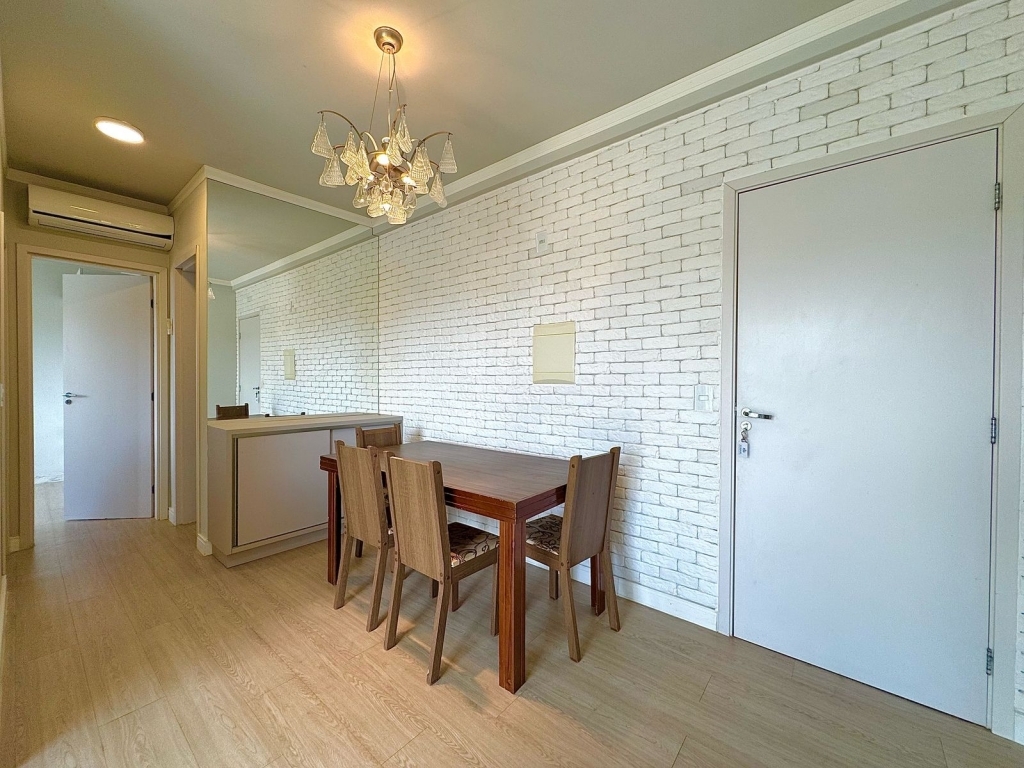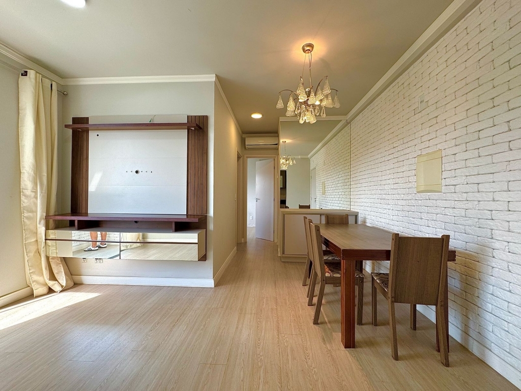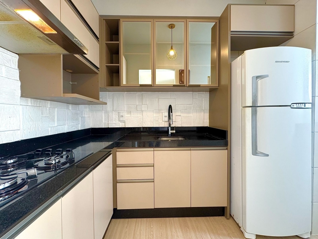 Contando com 02 dormitórios, 01 banheiro, 01 cozinha com móveis sob medida, 01 área de serviço, sacada com churrasqueira e 01 vaga de garagem coberta. Ar - condicionado.